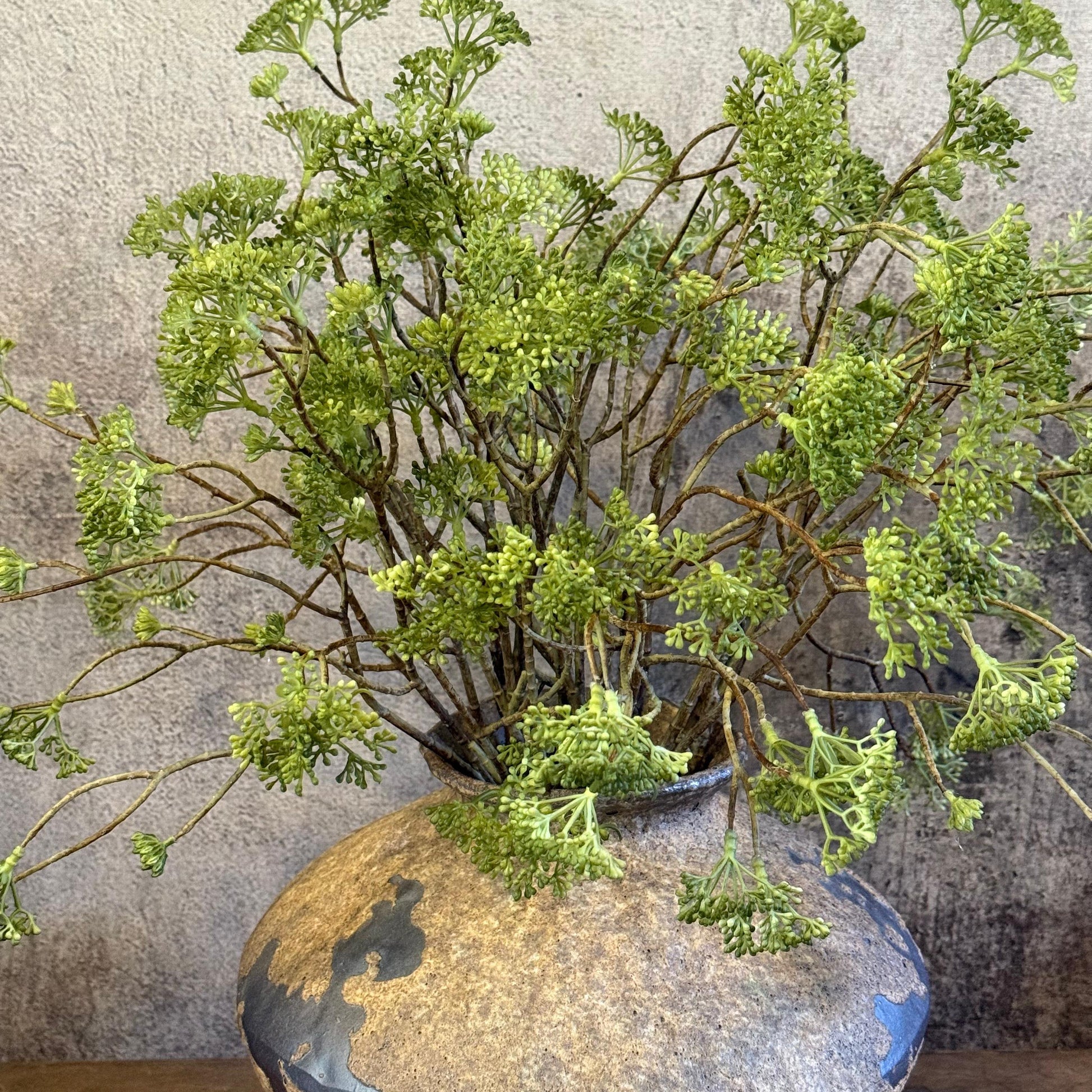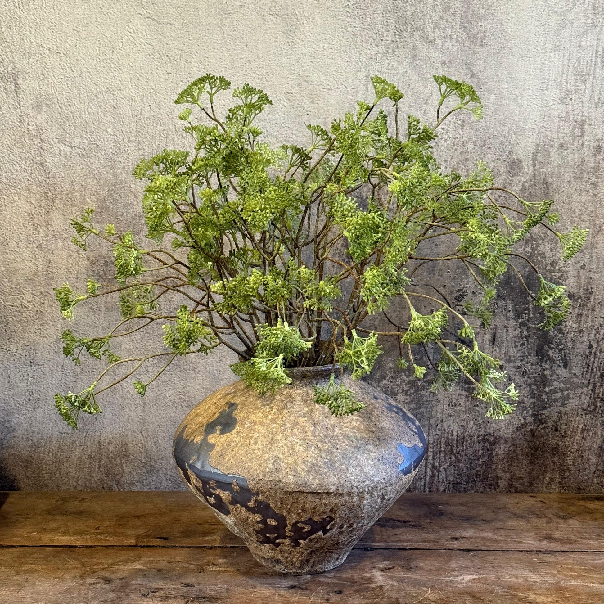 Lindo arreglo de follaje en nuestro florero de cerámica.